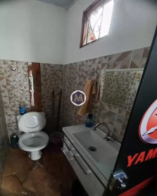 Garagem para 5 carros, banheiro, pia e bancada em granito