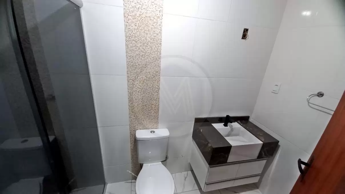 Amplo banheiro social, revestido, pia