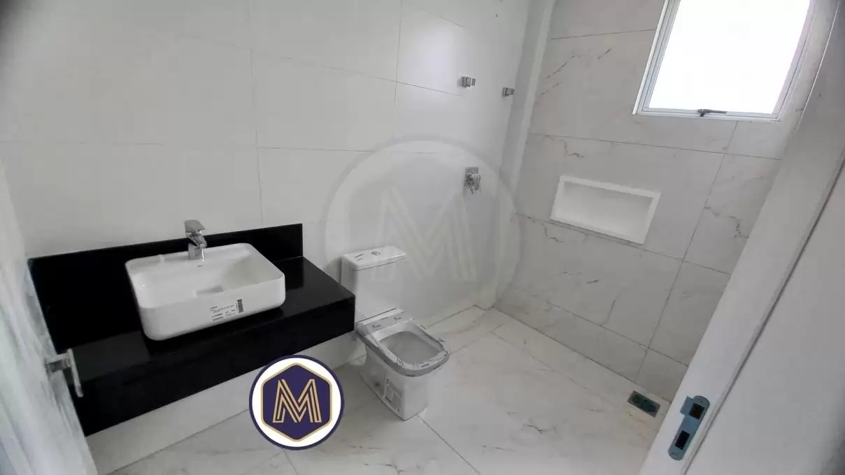 Suítes com bancada em granito, cuba de sobrepor, nicho na área de banho e pré