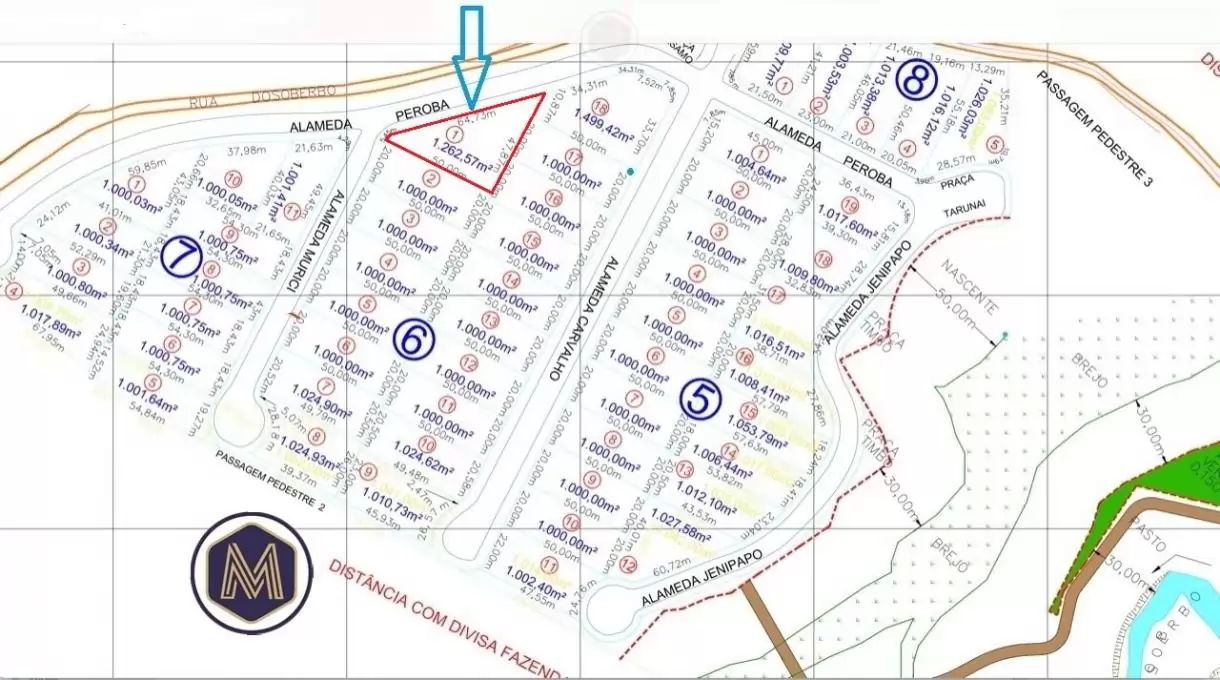 e plano lote 1.262m² em condomínio fechado; com Infraestrutura completa